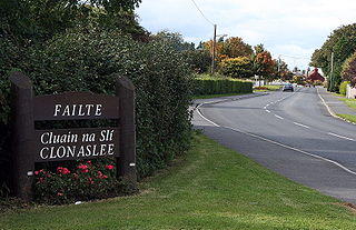 Clonaslee (Irish: Cluain na Slí)[1] is a village in north County Laois, Ireland, situated in the foothills of the Slieve Bloom Mountains on the R422 Mountmellick to Birr road. Clonaslee is approximately 100 km west of Dublin, and is close to the towns of Portlaoise and Tullamore.