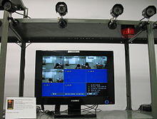 Closed-circuit television (CCTV), also known as video surveillance,[1][2] is the use of video cameras to transmit a signal to a specific place, on a limited set of monitors. It differs from broadcast television in that the signal is not openly transmitted, though it may employ point-to-point (P2P), point-to-multipoint (P2MP), or mesh wired or wireless links. Though almost all video cameras fit this definition, the term is most often applied to those used for surveillance in areas that require additional security or ongoing monitoring. Though videotelephony is seldom called "CCTV" one exception is the use of video in distance education, where it is an important tool.[3][4]