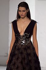 Fashion shows are often the source of the latest trends in clothing fashions. Photo of a model in a modern gown reflecting the current fashion trend at an Haute couture fashion show
