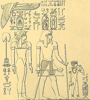 Wigs were used by both sexes of the upper class. Made of real hair, they contained other decorative elements. In the court, the more elegant examples had small goblets at the top filled with perfume. Heads were shaven; shaved heads are a sign of nobility.[1] Usually children were represented with one lock of hair remaining on the sides of their heads (see the image to the right).