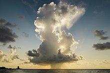 One agent is the convective upward motion of air caused by daytime solar heating at surface level.[14] Airmass instability allows for the formation of cumuliform clouds that can produce showers if the air is sufficiently moist.[16] On moderately rare occasions, convective lift can be powerful enough to penetrate the tropopause and push the cloud top into the stratosphere.[17]
