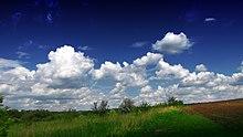 Clouds of this structure have both cumuliform and stratiform characteristics in the form of rolls, ripples, or elements.[5] They generally form as a result of limited convection in an otherwise mostly stable airmass topped by an inversion layer.[34] If the inversion layer is absent or higher in the troposphere, increased airmass instability may cause the cloud layers to develop tops in the form of turrets consisting of embedded cumuliform buildups.[35] The stratocumuliform group is divided into cirrocumulus (high-level), altocumulus (mid-level), and stratocumulus (low-level).[5]