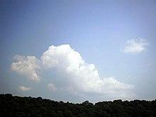 Cumuliform clouds generally appear in isolated heaps or tufts.[36][37] They are the product of localized but generally free-convective lift where no inversion layers are in the troposphere to limit vertical growth. In general, small cumuliform clouds tend to indicate comparatively weak instability. Larger cumuliform types are a sign of greater atmospheric instability and convective activity.[38] Depending on their vertical size, clouds of the cumulus genus type may be low-level or multi-level with moderate to towering vertical extent.[4]