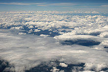 The table that follows is very broad in scope. It draws from several methods of cloud classification, both formal and informal, used in different levels of the Earth's homosphere by a number of cited authorities.[3][4][5][6][7] Despite some differences in nomenclature, the classification schemes seen in this article can be combined by using an informal cross-classification of physical forms and altitude levels to derive the 10 tropospheric genera, the fog and mist that forms at surface level, and several additional major types above the troposphere. The cumulus genus includes four species that indicate vertical size and structure which can affect both forms and levels. This table should not be seen as a strict or singular classification, but as an illustration of how various major cloud types are related to each other and defined through a full range of altitude levels from Earth's surface to the "edge of space."