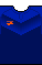 - Home : White t-shirt with a blue "V", blue shorts and blue socks.