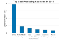 | 2018 coal production, reserves, miners, and major coal-producing regions for China, India, The US, and Australia. Together, these countries account for 70% of global annual coal production. This table includes jurisdictions which are the top coal-producing provinces/states, responsible for over 85% of each country's coal production.[16] | |||||