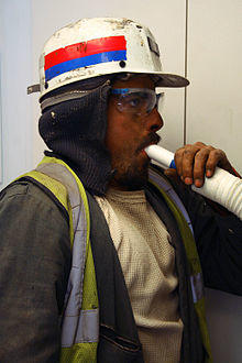Improvements in mining methods (e.g. longwall mining), hazardous gas monitoring (such as safety-lamps or more modern electronic gas monitors), gas drainage, electrical equipment, and ventilation have reduced many of the risks of rock falls, explosions, and unhealthy air quality. Gases released during the mining process can be recovered to generate electricity and improve worker safety with gas engines.[49] Another innovation in recent years is the use of closed circuit escape respirators, respirators that contain oxygen for situations where mine ventilation is compromised.[50] Statistical analyses performed by the US Department of Labor's Mine Safety and Health Administration (MSHA) show that between 1990 and 2004, the industry cut the rate of injuries by more than half and fatalities by two-thirds. However, according to the Bureau of Labor Statistics, even in 2006, mining remained the second most dangerous occupation in America, when measured by fatality rate.[51] However, these numbers include all mining, with oil and gas mining contributing the majority of fatalities; coal mining resulted in only 47 fatalities that year.[51]