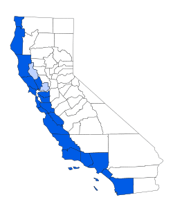 Coastal California, also known as the California Coastline and the Golden Coast, refers to the coastal regions of the U.S. state of California. The term is not primarily geographical as it also describes an area distinguished by cultural, economic and political attributes.