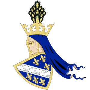 The coat of arms of the Kings of Bosnia, who ruled from 1377 until 1463 over the area that is present day Bosnia-Herzegovina and Dalmatia, consisted of a blue shield with six Golden Lilies displayed around a white bend, all within a gold bordure; the Golden Lily is the Lilium bosniacum, which is a native lily to the area. The crest is a plume of peacock feathers that sit within a coronet of lilies. The House of Kotromanić reigned until 1463 when the Ottomans conquered the region, ceasing then the use of the royal coat of arms in Bosnia. The heraldic display of the kings would later be the basis for the arms adopted by the republic in 1992.