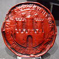 The oldest coat of arms of Hamburg has been retained on city seals of the 12th and 13th centuries. During the centuries the towers, walls, pinnacles and symbols of the coat of arms of Hamburg changed several times, without changing in character. The central castle was shown with opened doors sometimes with closed doors and with a portcullis.[1]