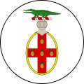 Blazon | Argent on a Cross Gules five pine-apples slipped OR |