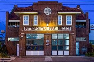 The Upfield railway line opened in 1884, and the Coburg railway station was built in 1888. In February 1889 the horse tram service began along Sydney Road. Electric trams started in service in 1916.[3]