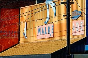 The main commercial activity in Coburg is the precinct between Coburg railway station and Sydney Road. Coburg doesn't have an enclosed shopping mall, though it does have four shopping arcades on the west side of Sydney Road. Coburg's main commercial precinct comprises about 250 shops, a small indoor market, several supermarkets and discount stores such as Dimmeys arranged around large, ground level car parks. In the 1990s the Victoria Street pedestrian mall was revamped with native trees and bluestone paving and has become an extremely popular place for locals to congregate, enjoying the local cafes. While Coburg Shopping Centre is very busy during the day, its modest number of restaurants, cafes and bars means that it can be quiet in the evenings. The commercial strip of Sydney Road is continuous from Coburg's southern neighbour Brunswick, but it has a very different character, having so far remained ungentrified.