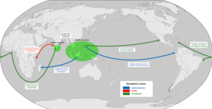 Chronological dispersal of Austronesian peoples across the Indo-Pacific[15][16]