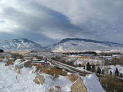 Because of the dry climate, the entire area is laced with irrigation canals, holding ponds, laterals, and drops. The Buffalo Bill Dam between Rattlesnake and Cedar mountains forms a large reservoir about 10 miles (16 km) to the west of Cody. This reservoir (among others) feeds the Shoshone Project, a large irrigation water distribution system.