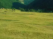 A large meadow, known as the St Ursus Meadow (It. Prati di Sant'Orso; Fr. Prés de Saint-Ours), is located at the southern edge of the town center (webcam); the municipal statute forbids any construction works on this meadow, which has received recognition as a "Wonder of Italy".[4][5]