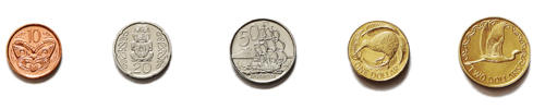 As of 1 April 2018, there are five denominations of coins in regular circulation: 10c, 20c, 50c, $1, and $2. All New Zealand coins are round, and use medallic orientation.