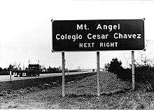 Colegio Cesar Chavez (Spanish for "Cesar Chavez College") was an American college-without-walls in Mount Angel, Oregon (the concept of college without walls is explained more below.) The college was named after Mexican American civil rights activist César Chávez. Colegio was established in 1973 and closed in 1983.[1][2] Colegio was the first accredited, independent four-year Chicano/Latino college in the United States. In 1975 it was granted candidacy status from the Northwest Association of Schools and Colleges.[3] In 1977, Colegio granted degrees to 22 graduates, a number exceeding the combined number of Chicanos who graduated that same year from University of Oregon and Oregon State University.[4] In his book Colegio Cesar Chavez, 1973–1983: A Chicano Struggle for Educational Self-Determination, author Carlos Maldonado writes that Colegio Cesar Chavez was one of the few institutions that was named after Cesar Chavez during his lifetime.