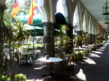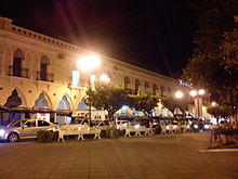 The best known hotel of the city is Hotel Ceballos, located just off the main square called Jardín Libertad behind a set of arches. The hotel was begun by the Ceballos family. Hotel Ceballos has an area under and in front of the arches for outdoor dining.[5] Here and in other restaurants in the city, one can try popular dishes such as atole with milk, white pozole, white menudo, tatamado, pipián mole, birria and sopes.[6] On the side of the Hotel, there is pedestrian street called Andador Constitución. It retains traditional businesses such as the Joven Don Manuelito ice cream shop, which has been there since 1944. On the street proper, one can see street musicians and artists offering to paint or draw landscapes and portraits. At the end of this street, there is a large handcrafts store funded by a government agency called DIF, which focuses on crafts from the state such as indigenous clothing and ceramic figures, especially those of the Mexican hairless dog also known as the Xoloizcuintle or simply Xolo.[5]