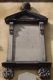 He is buried at Greyfriars Kirkyard, Edinburgh. The simple table stone is inscribed simply "C. M. Nat MDCXCVIII Ob MDCCXLVI" and stands close to the south-west corner of the church but is supplemented by a more wordy memorial on the outer wall of the church.