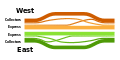 The local–express lane system is an arrangement of carriageways within a major highway where long distance traffic can use lanes with fewer interchanges compared to local traffic which use 'local' or 'collector' lanes that have access to all interchanges. This can also be called a collector–distributor lane within a single interchange. One of the longest examples is Highway 401 in Toronto, where highway ramps between express and local/collector lanes cross over one another; these are commonly known as braided ramps.[1][2][3][4][5][6]