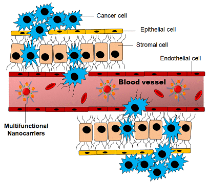 Gold nanoparticles accumulate in tumors, due to the leakiness of tumor vasculature, and can be used as contrast agents for enhanced imaging in a time-resolved optical tomography system using short-pulse lasers for skin cancer detection in mouse model. It is found that intravenously administrated spherical gold nanoparticles broadened the temporal profile of reflected optical signals and enhanced the contrast between surrounding normal tissue and tumors.[40]