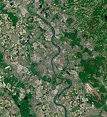 Cologne is regularly affected by flooding from the Rhine and is considered the most flood-prone European city.[34] A city agency (Stadtentwässerungsbetriebe Köln,[35] "Cologne Urban Drainage Operations") manages an extensive flood control system which includes both permanent and mobile flood walls, protection from rising waters for buildings close to the river banks, monitoring and forecasting systems, pumping stations and programmes to create or protect floodplains, and river embankments.[34][36] The system was redesigned after a 1993 flood, which resulted in heavy damage.[34]