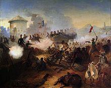 African peoples were relatively disjointed, leading European powers to employ a strategy of divide and rule, aggravate internal tensions, and make use of collaborationism.[12] In response, African leaders sometimes formed coalitions.[35] General Thomas Robert Bugeaud oversaw the first deployment of mobile columns in a colonial war in 1840 when he ordered formations to raid and plunder Arab settlements to aid in the French pacification of Algeria upon realizing that local civilians were playing a key role in the war effort.[36]