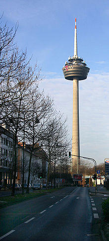 Colonius is the Cologne telecommunications tower, which was finished in 1981. The Colonius possesses a cafeteria, viewing platform, and a restaurant, apart from antennas for radio relay and radio services within the VHF range. Because of a missing leaseholder, the visitor's area including restaurant and viewing platform is currently closed (as of 1992, still closed on 10 July 2019). At the time of its completion the Colonius was 252.9 meters high. In 2004 a radio tower added by helicopter increased the height to 266 meters. This addition allowed the broadcast of digital television (DVB-T) from the tower in the Cologne/Bonn region.