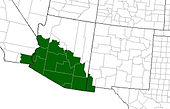 The Colorado River toad is found in the lower Colorado River and the Gila River catchment areas, in southeastern California, New Mexico, Mexico and much of southern Arizona. It lives in both desert and semi-arid areas throughout its range. It is semiaquatic and is often found in streams, near springs, in canals and drainage ditches, and under water troughs.[3] The Colorado River toad is known to breed in artificial water bodies (e.g., flood control impoundments, reservoirs) and as a result, the distributions and breeding habitats of these species may have been recently altered in south central Arizona.[5] It often makes its home in rodent burrows and is nocturnal.