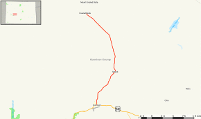 It begins at the intersection of U.S. Highway 50 and Main Street in Gunnison and follows Main Street North out of town. Between miles 10 and 11, it passes through the community of Almont. It terminates at the intersection of Elk Avenue and 6th Street (the Four Way Stop) in Crested Butte.[1]