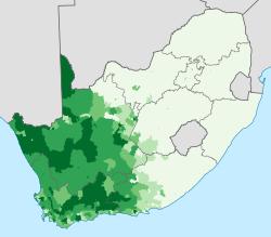 In the 21st century, Coloured people constitute a plurality of the population in the provinces of Western Cape (48.8%), and a large minority in the Northern Cape (40.3%), both areas of centuries of mixing among the populations. In the Eastern Cape, they make up 8.3% of the population. Most speak Afrikaans, as they were generally descendants of Dutch and Afrikaner men and grew up in their society. About twenty percent of the Coloured speak English as their mother tongue, mostly those of the Eastern Cape and KwaZulu-Natal. Virtually all Cape Town Coloured are bilingual.[17][18]
