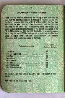 - ^ Posel, Deborah (2001). "What's in a name? Racial categorisations under apartheid and their afterlife" (PDF). Transformation: 50–74. ISSN 0258-7696. Archived from the original (PDF) on 2006-11-08.