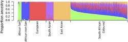 - ^ de Wit, E; Delport, W; Rugamika, CE; Meintjes, A; Möller, M; van Helden, PD; Seoighe, C; Hoal, EG (August 2010). "Genome-wide analysis of the structure of the South African Coloured Population in the Western Cape". Human Genetics. 128 (2): 145–53. doi:10.1007/s00439-010-0836-1. PMID 20490549. S2CID 24696284.