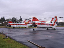 Columbia currently operates eight Boeing-Vertol Model 234s and 14 Boeing-Vertol 107-IIs tandem rotor helicopters. Many of the latter were obtained from New York Airways. In addition to the flying fleet, in 2005 CHI purchased eight surplus Canadian Forces CH-113 Labrador helicopters for fleet expansion.[9] For fleet support CHI operates a Beechcraft 200C Super King Air.[10] When the 234s operate internationally, five containers are used for support tasks.[11]