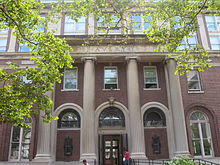 Columbia scientists and scholars have played an important role in scientific breakthroughs including brain-computer interface;[12][13][14] the laser and maser;[15][16] nuclear magnetic resonance;[17] the first nuclear pile;[18] the first nuclear fission reaction in the Americas;[19] the first evidence for plate tectonics and continental drift;[20][21][22] and much of the initial research and planning for the Manhattan Project during World War II. Columbia is organized into twenty schools, including four undergraduate schools and 15 graduate schools. The university's research efforts include the Lamont–Doherty Earth Observatory, the Goddard Institute for Space Studies, and accelerator laboratories with major technology firms such as IBM.[23] Columbia is a founding member of the Association of American Universities and was the first school in the United States to grant the M.D. degree.[9][24] With over 14 million volumes, Columbia University Library is the third largest private research library in the United States.[25]