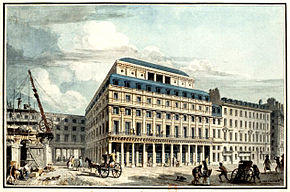 On the performance of Joseph Chénier's anti-monarchical play Charles IX in 1789, violent political discussions arose among the performers, and ultimately they split into two sections: the Republican party, under the young tragedian Talma, establishing a new theatre under the name "Théâtre de la République," on the site of the present building in the Rue de Richelieu; while the Royalist section took the title "Théâtre de la Nation."[2] On 3 September 1793, during the French Revolution, the Théâtre de la Nation was closed by order of the Committee of Public Safety for putting on the allegedly seditious play Pamela, and the actors were imprisoned though gradually released later. On 31 May 1799, the new government made the Salle Richelieu available and allowed the actors to reconstitute the troupe.