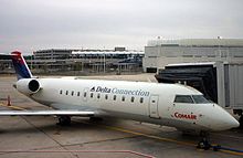 In July 1986 Delta Air Lines acquired 20% of Comair stock. The airline began operating a second hub at Orlando International Airport (MCO) during the late 1980s in support of the Delta hub at the airport.[3] In 1992, Comair moved into Concourse C at CVG, as Delta Air Lines gradually continued to acquire more of the airlines stock. In 1993, Comair was the launch customer for the Canadair Regional Jet CRJ100 and would later operate the largest fleet in the world of this twin jet type. By 1999, Comair was the largest regional airline in the country worth over 2 billion, transporting 6 million passengers yearly to 83 destinations on 101 aircraft.[4] That same year, in addition to shorter range flights from its Cincinnati and Orlando hubs, Comair as the Delta Connection was operating nonstop flights between Cincinnati and Nassau, Bahamas, nonstop between Cincinnati and Colorado Springs, nonstop between Boston and Myrtle Beach, nonstop between Boston and Montreal, and also nonstop between Tulsa and Las Vegas with the latter being the westernmost destination ever served by the airline.[5] Delta Air Lines acquired full ownership on October 22, 1999[1] at a cost of over $2 billion.