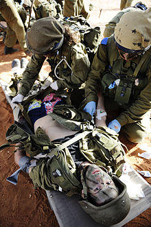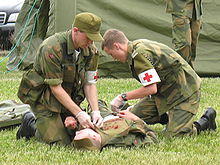 The modern-day interpretation of the U.S. Army doctrine requires medics to carry one primary weapon and, if possible, a secondary weapon.[9] It is also common to find American combat medics who are no longer wearing the red or white cross because it is considered unethical to do so when the combat medic is carrying a weapon and could engage in actual combat.[10]
