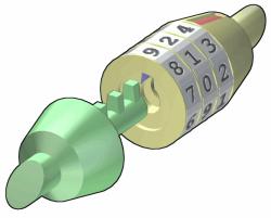 Combination locks found on padlocks, lockers, or safes may use a single dial which interacts with several parallel discs or cams. Customarily, a lock of this type is opened by rotating the dial clockwise to the first numeral, counterclockwise to the second, and so on in an alternating fashion until the last numeral is reached. The cams typically have an indentation or notch, and when the correct combination is entered, the notches align, allowing the latch to fit into them and open the lock.