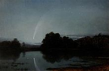 Donati's Comet appears as a streak and star in the early evening sky of a painting by William Dyce, Pegwell Bay, Kent – a Recollection of October 5th 1858.[14] It was featured in a number of sketches and at least one painting by William Turner of Oxford, and in a painting, "The Comet of 1858, as seen from the Heights of Dartmoor", by Samuel Palmer. The Comet at Yell'ham, a 1902 poem by Thomas Hardy, was inspired by his recollections of Donati's Comet.[15]