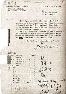 The paragraph in which General Müller called for army commanders to prevent "excesses" was removed on the request of the OKW.[9] Brauchitsch amended the order on 24 May 1941 by attaching Müller's paragraph and calling on the army to maintain discipline in the enforcement of the order.[10] The final draft of the order was issued by OKW on 6 June 1941 and was restricted only to the most senior commanders, who were instructed to inform their subordinates verbally.[10]