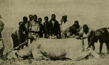 The name 'eland' is Dutch for "elk" or "moose".[7] It has a Baltic source similar to the Lithuanian élnis, which means "deer". It was borrowed earlier as ellan (French) in the 1610s or Elend (German).[8][9] When Dutch settlers came to the Cape Province, they named it after the large, herbivorous moose. In Dutch the animal is called "Eland antelope" to distinguish it from the moose, which is found in the northern boreal forests.[7]