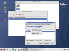 Starting with Red Hat Linux 9, Red Hat provided an integrated print manager based on CUPS and integrated into GNOME. This allowed adding printers via a user interface similar to the one Microsoft Windows uses, where a new printer could be added using an add new printer wizard, along with changing default printer-properties in a window containing a list of installed printers. Jobs could also be started and stopped using a print manager and the printer could be paused using a context menu that pops up when the printer icon is right-clicked.