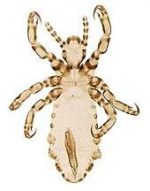 Chimps and humans share only 50% of their parasite and microbe species. This is due to the differences in environmental and dietary adaptations; human internal parasite species overlap more with omnivorous, savanna-dwelling baboons.[68] The chimpanzee is host to the louse species Pediculus schaeffi, a close relative of P. humanus which infests human head and body hair. By contrast, the human pubic louse Pthirus pubis is closely related to Pthirus gorillae which infests gorillas.[68] A 2017 study of gastrointestinal parasites of wild chimps in degraded forest in Uganda found nine species of protozoa, five nematodes, one cestode, and one trematode. The most prevalent species was the protozoan Troglodytella abrassarti.[69]