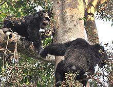 Chimpanzees do not appear to directly compete with gorillas in areas where they overlap. When fruit is abundant gorilla and chimp diets converge, but when fruit is scarce gorillas resort to vegetation.[58] The two apes may also feed on different species, whether fruit or insects.[59][52][53] Chimps and gorillas usually ignore or avoid each other when feeding on the same tree, although hostile encounters have occasionally been documented.[58][60]