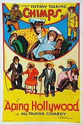 In Western popular culture, chimpanzees have occasionally been stereotyped as childlike companions, sidekicks or clowns. They are especially suited for the latter role on account of their prominent facial features, long limbs and fast movements, which humans often find amusing. Accordingly, entertainment acts featuring chimpanzees dressed up as humans with lip-synchronised human voices have been traditional staples of circuses, stage shows and TV shows like Lancelot Link, Secret Chimp (1970-1972) and The Chimp Channel (1999).[136] From 1926 until 1972, London Zoo, followed by several other zoos around the world, held a chimpanzees' tea party daily, inspiring a long-running series of advertisements for PG Tips tea featuring such a party.[137][138] Animal rights groups have urged a stop to such acts, considering them abusive.[139]