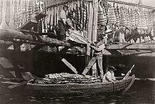The ling is edible; it is marketed in fresh, salted, or dried forms, and used as fishmeal.[7] The salted roe of the ling is considered a delicacy in Spain and is known as huevas de maruca.[12] Ling can be made into lutefisk.[13] The common ling is targeted by commercial fisheries using trawls, although long lines are used in some mainland European- and Faroese-based fisheries.[14] This is a deep-water species and its swim bladder is badly damaged by being brought up to the surface from the depths; the advice for sport anglers is, therefore, that boat-caught ling should not be returned to the sea and that they should stop fishing when enough have been caught for the table. The stock is thought to be reasonably good,[10] but the IUCN has stated that no data are available on the population size or any population trends, that the population in the Mediterranean Sea may be marginal, with the major portion of its global range in the Atlantic. So, no data are available to allow a determination the status of the ling beyond data deficient.[1] Ling is regarded as a "fish to avoid" for consumers by the Marine Conservation Society because it is trawled.[15] In 1999, the total catch of common ling reported to the Food and Agriculture Organization was 53,870 tonnes and the countries with the largest landings were Norway with 19,215 tonnes and the United Kingdom with 11,350 tonnes.[7]