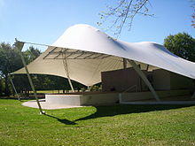 | Play sculpture | David Tolley | Commissioned 1967, installed 1970[1] | Collection of 4 white sculptures each of which comprises two structures, located near the Children's Fort playground. The sculptures are constructed from precast concrete and finished with fiberglass.[1] The sculpture were designed to feel organic and inviting for people to play/sit on. The sculptures were part of a larger 7-piece sculpture that was originally designed to be displayed together.[2] Another similar version of this artwork can be found in Weston Park.[3] |