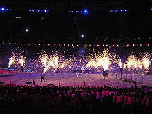 Various elements frame the opening ceremony of the Commonwealth Games. This ceremony takes place before the events have occurred. The ceremony typically starts with the hoisting of the host country's flag and a performance of its national anthem. The flag of the Commonwealth Games Federation, flag of the last hosting nation and the next hosting nation are also hosted during the opening ceremony. The host nation then presents artistic displays of music, singing, dance and theatre representative of its culture. The artistic presentations have grown in scale and complexity as successive hosts attempt to provide a ceremony that outlasts its predecessor's in terms of memorability. The opening ceremony of the Delhi Games reportedly cost $70 million, with much of the cost incurred in the artistic segment.[62]